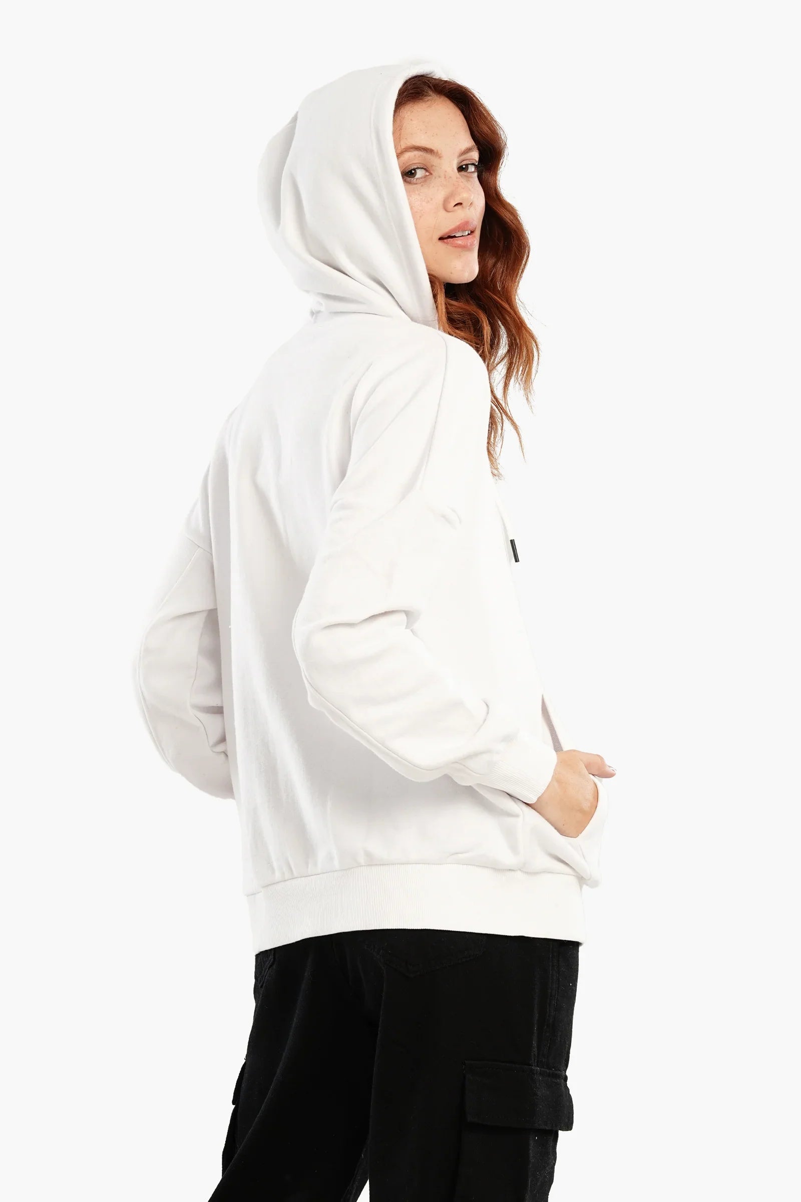 - Hooded neck with drawstring
